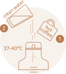Adjust the final temperature of the coffee solution (by adding hot or room temperature clean water) to about 40°C. Its temperature shall not be lower than the human body temperature (37°C), but not too hot as well.