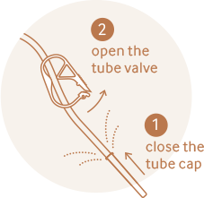 Cap to remain closed, open the tube valve to allow the excessive coffee solution to flow through the tube. Close the tube valve when the intended volume has been reached.