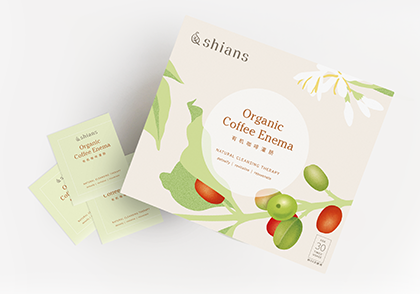 Shians有机咖啡灌肠,从咖啡(连同抗氧化和抗衰老成分的配方)到咖啡灌肠套件的设计与机理,是经由1998年已开始执行咖啡灌肠的Shians创始人的认证和授权。